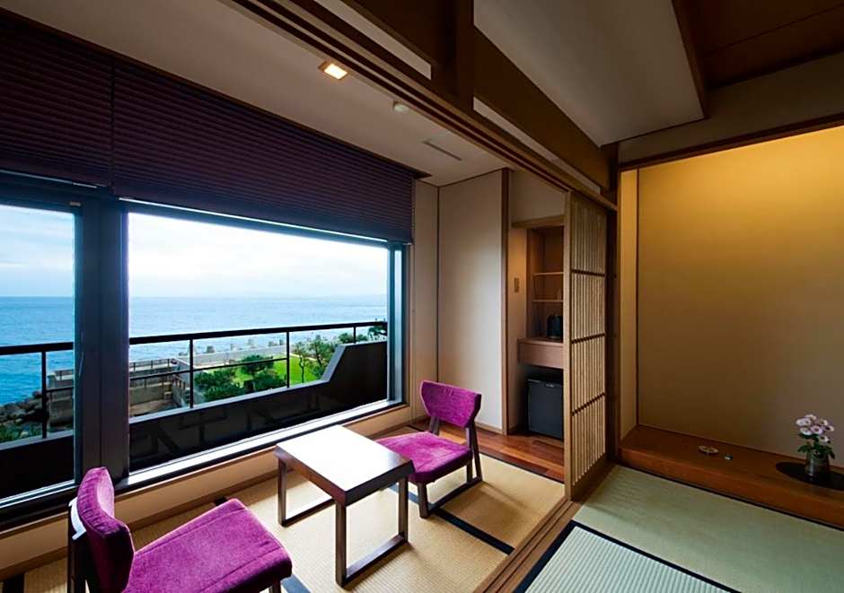 The quadruple room includes a private bathroom, well-fitted with a bath, a shower, a bidet, a hairdryer and slippers. The air-conditioned quadruple room features a flat-screen TV, tatami, a safe deposit box, an electric kettle as well as sea views. The unit has 2 beds and 3 futons.